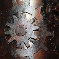 J'ai également adoré utiliser les petits accessoires de Tim Holtz (clef à tourner sur la première boite et robinet sur la deuxième). Les découpes engrenages sont toutes des découpes faites avec des dies de Tim Holtz pour Sizzix.